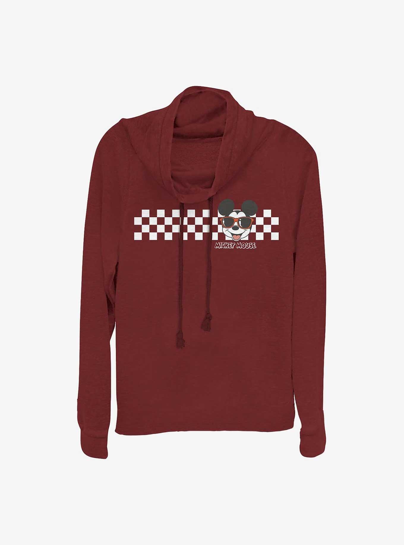 Disney Mickey Mouse Checkers Girls Cowl Neck Long Sleeve Top