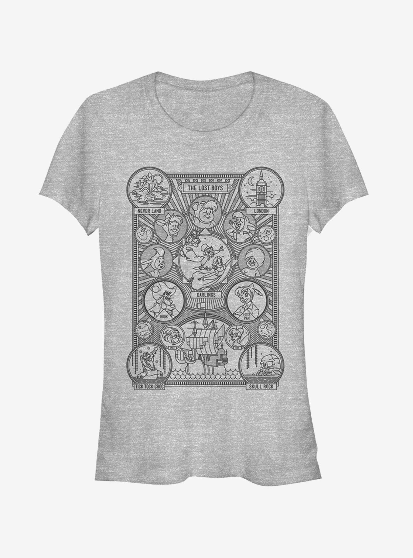 Grab your Peter Pan T-Shirt and head to Neverland with the Lost Boys to fight pirates, swim with mermaids, and have the adventure of a lifetime! Sprinkle a little fairy dust into your day in an awesome Peter Pan design with Captain Hook, Peter Pan, Wendy, Tinker Bell, the Lost Boys, and more! Runs small, size up