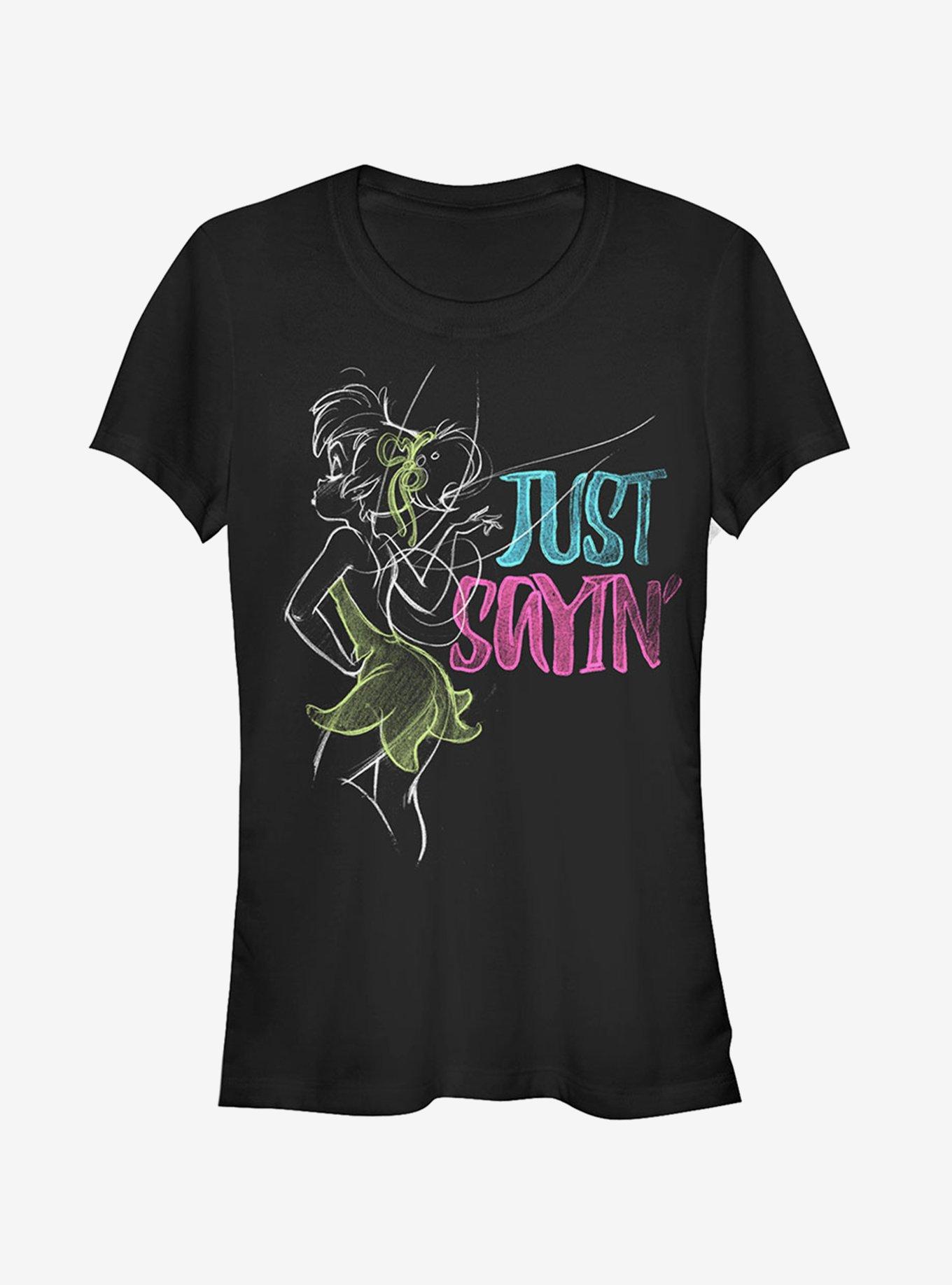 She may not say a whole lot but you can still tell she's got attitude on the Disney Tinker Bell Just Saying T-Shirt! This funny fitted Tink tee reads "Just Sayin'" in a fun chalk-style font next to your favorite Pixie. Runs small, size up.