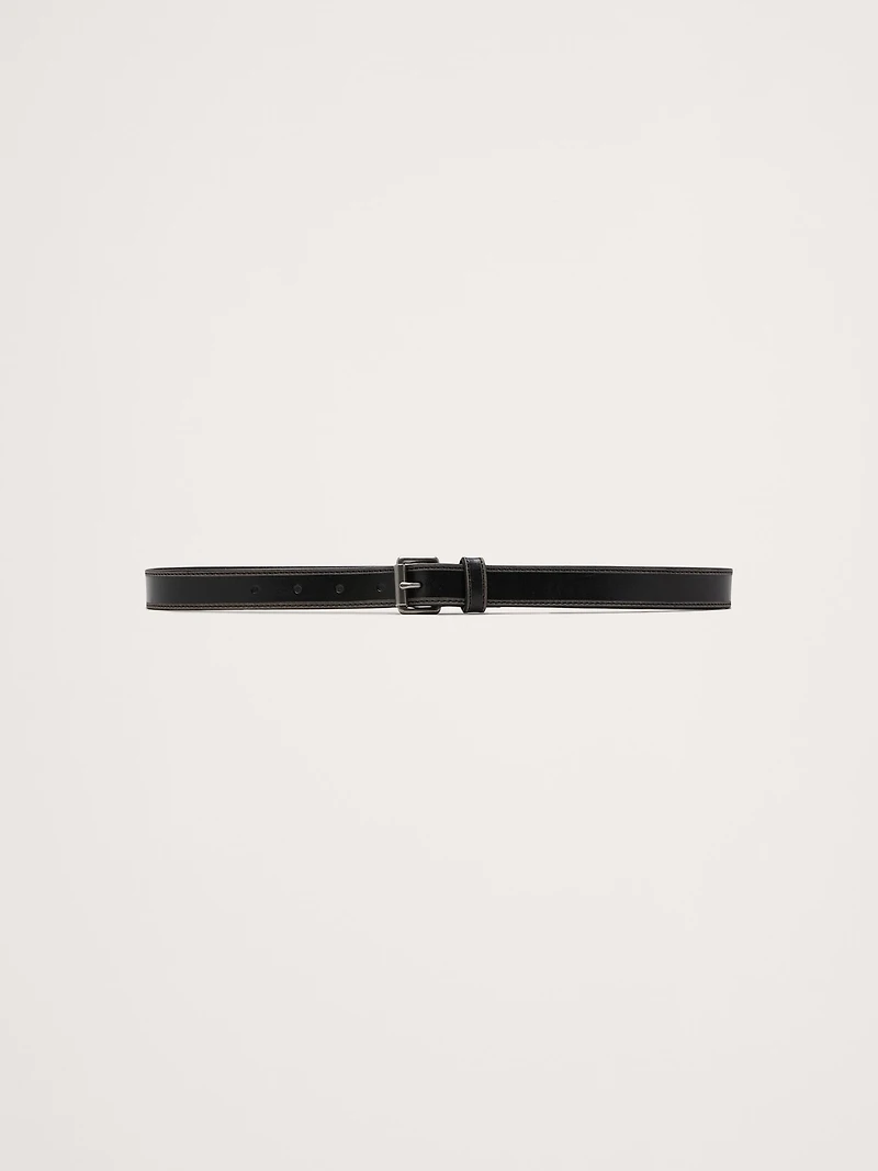 Based on a vintage sample in the BR archives, this skinny leather belt has subtle distressing so it looks even better than the original. Designed to be worn at the hips.