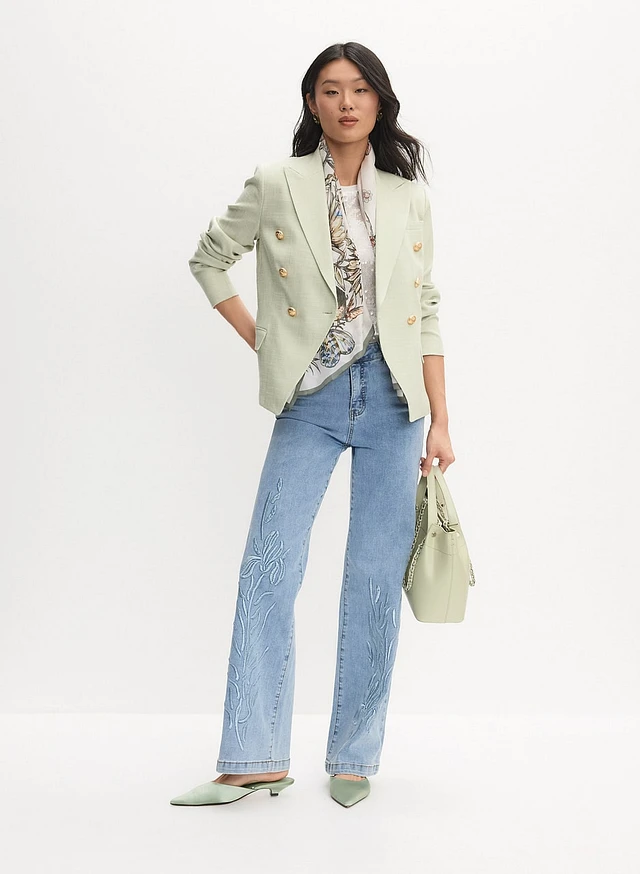 Double-Breasted Blazer & Embroidered Wide-Leg Jeans