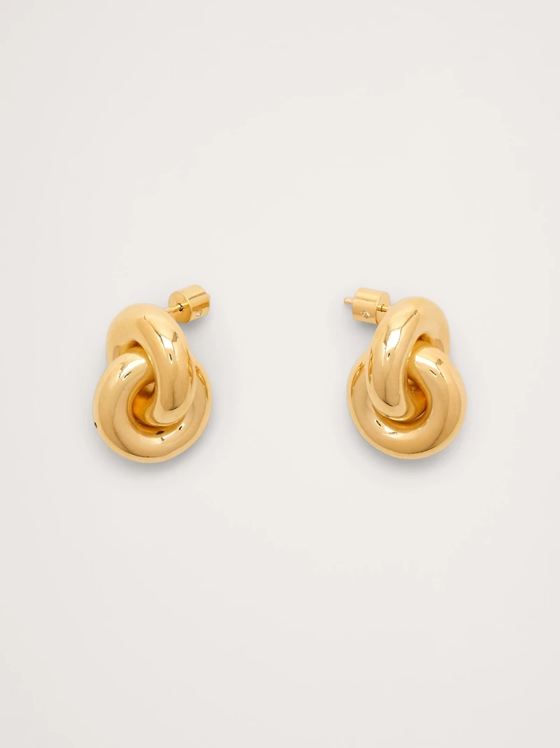 A modern take on doorknocker styles, we kept things simple here with rounded links—in your choice of 14k-gold or 999-silver plated brass. 14k-gold or 999-silver plated brass. Post backs.