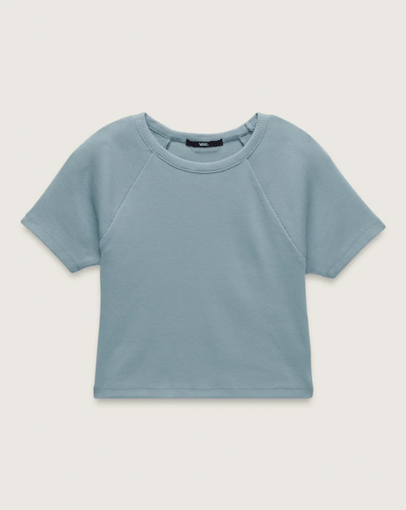 Channel the 90s in the Drew Baby Tee, a goes-with-anything knit rib fitted t-shirt that's longer than a crop, but shorter than a classic cut. A Vans® flag label at the hem finishes the shirt in streetwear style.