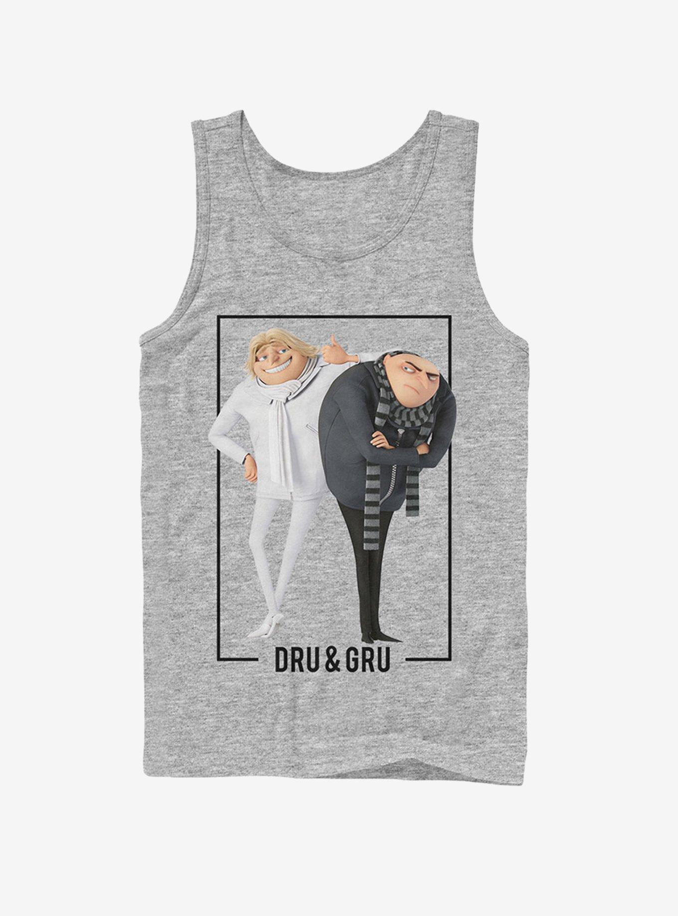 They finish each other's sentences and wear each other's clothes like the Despicable Me 3 Dru and Gru Brothers Men's Tank Top. The twins, Gru and Dru, show off their different personalities on this funny Despicable Me 3 muscle tee.