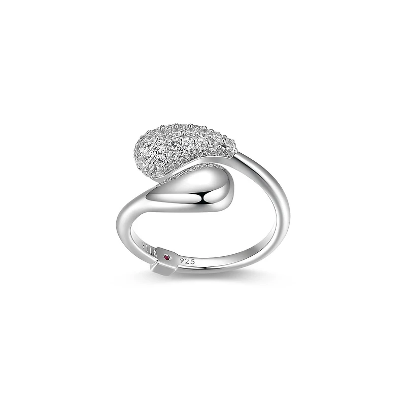 Sterling Silver ELLE "RAINDROP" Rhodium Plated Pave Cubic Zirconia & Puffy High Polish Pear Shape BY Pass Ring in Size 7