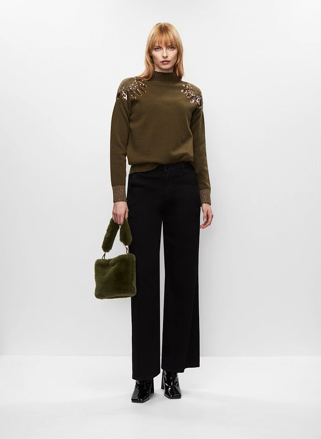Embellished Sweater & Flare Leg Jeans