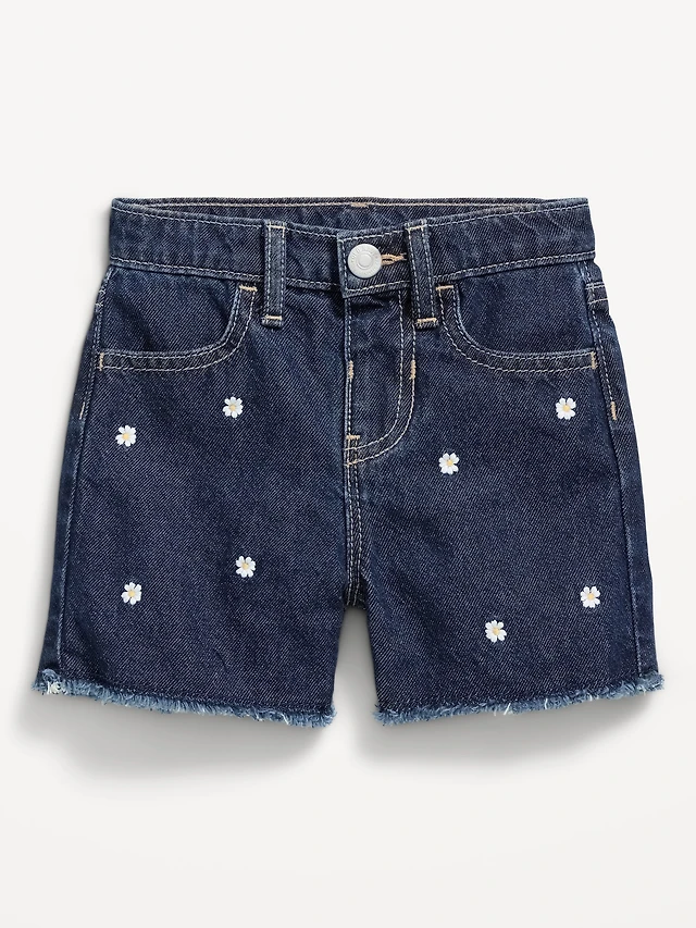 Embroidered Frayed-Hem Jean Shorts for Toddler Girls