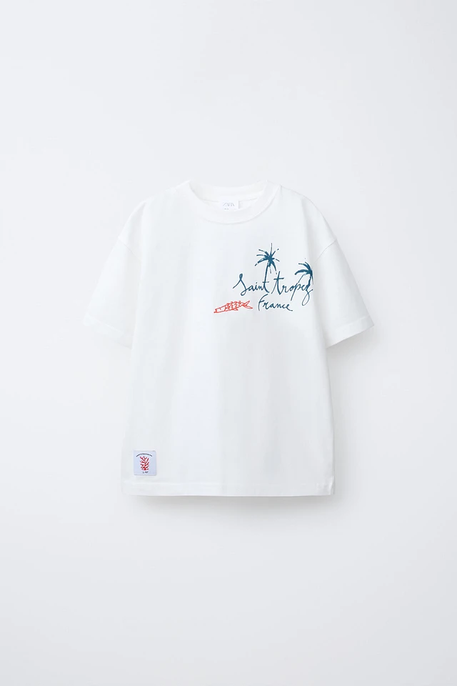 EMBROIDERED AND TEXT T-SHIRT