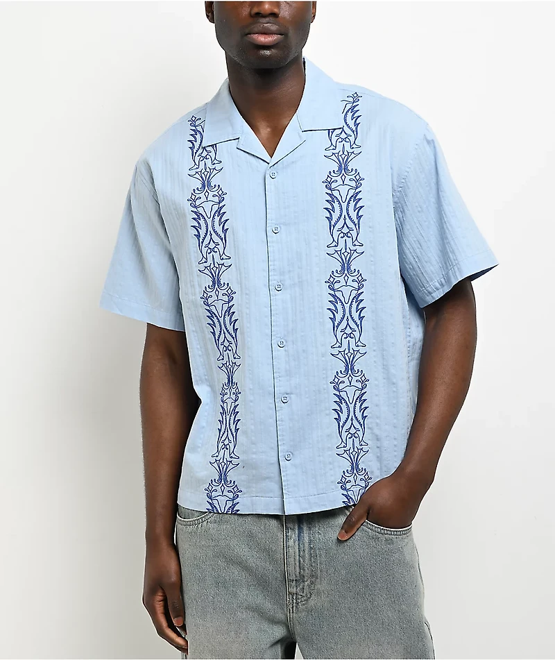 Empyre Lenny Embroidered Bue Button Up Shirt
