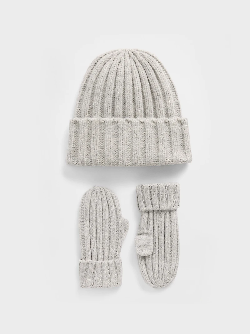 Ensemble de bonnet et mitaines en ticot côtelé Effet cachemire pour Bébé Tout-petit
