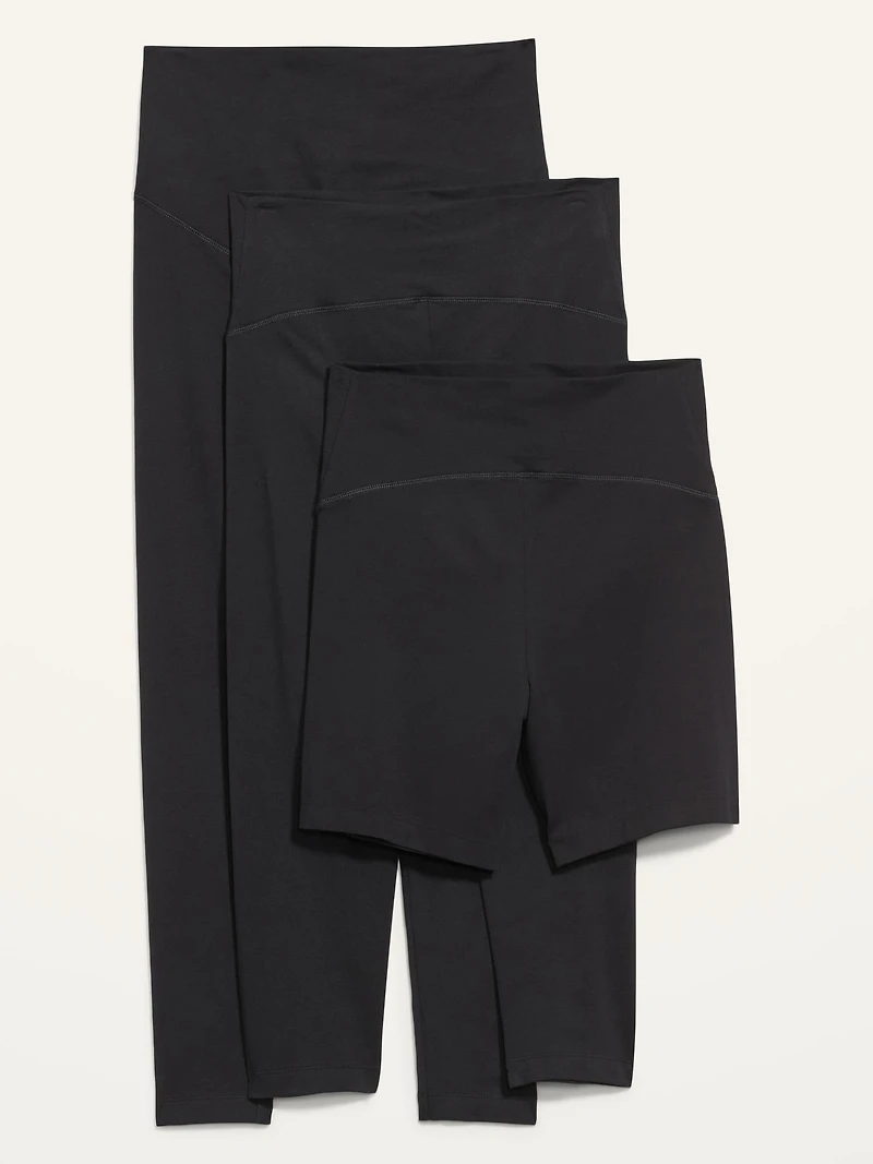 Ensemble de maternité 3 pièces avec legging, capri et cuissard à panneau complet.