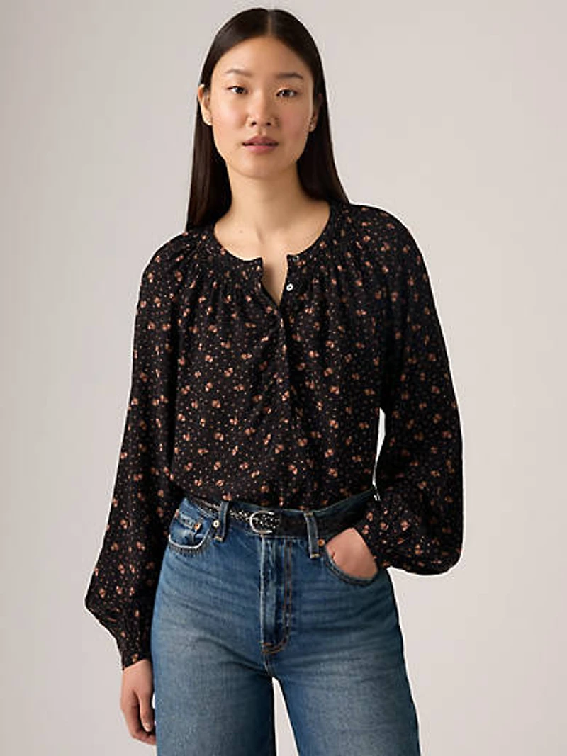 We call our Estelle Long-Sleeve Blouse a wear-everywhere favorite. It features a button-up collar, voluminous sleeves and flowy fit.