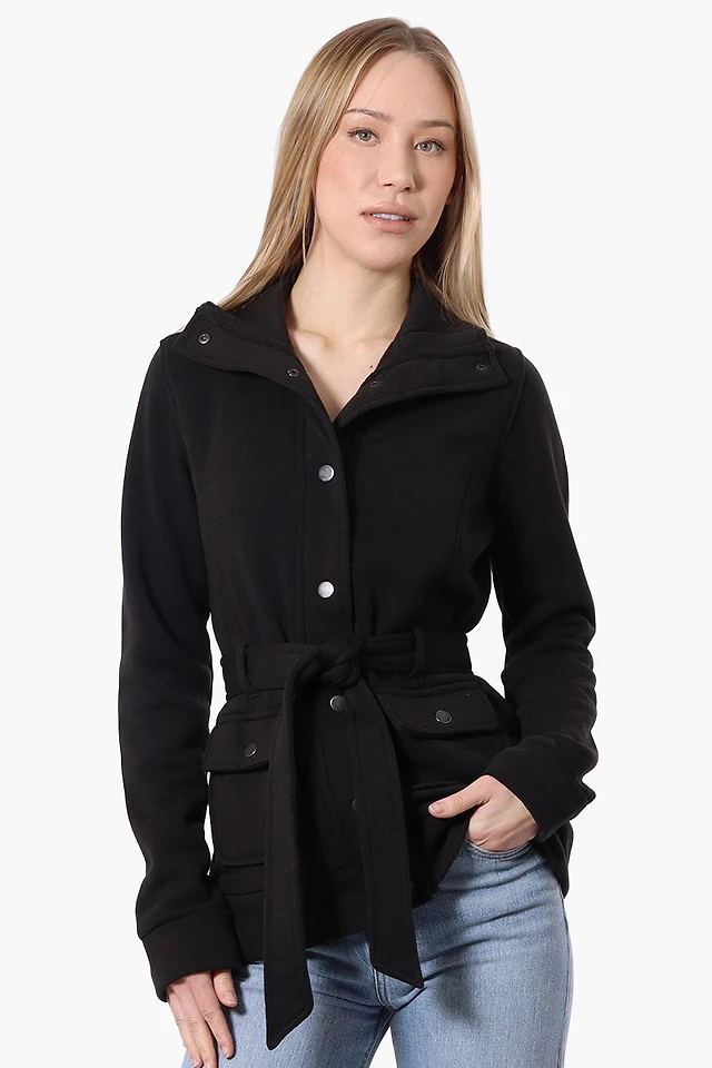 Fahrenheit Belted Fleece Lightweight Jacket - Black