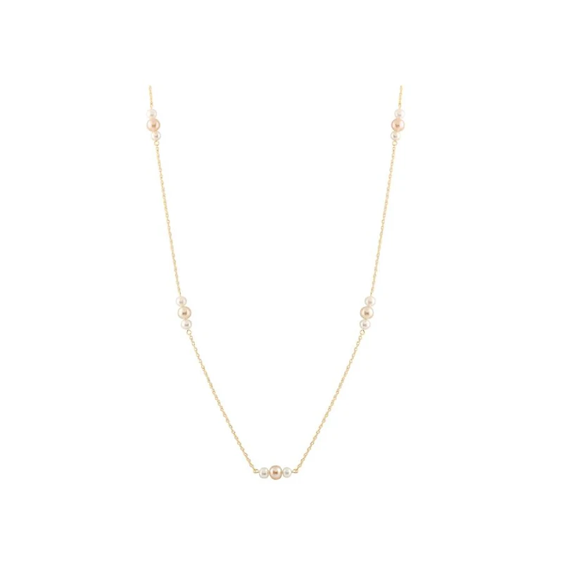 10k gold chain necklace with white and pink freshwater pearl stations.