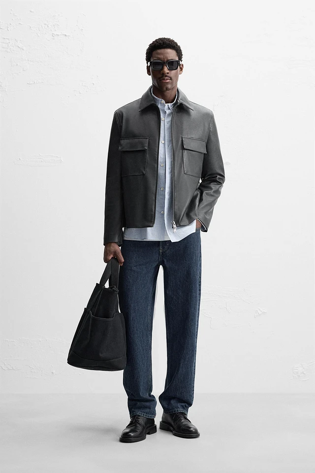 FAUX LEATHER OVERSHIRT WITH POCKETS