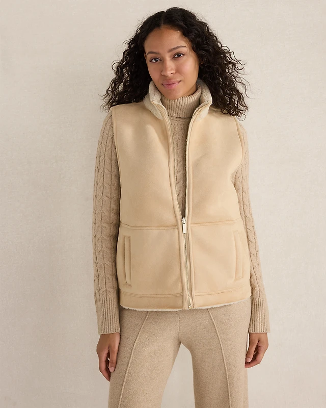 EMBROIDERED FAUX SUEDE SHEARLING VEST