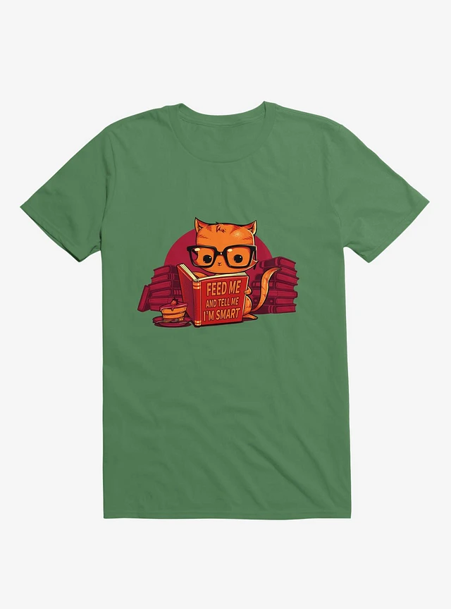 Feed Me And Tell I'm Smart Cat Kelly Green T-Shirt