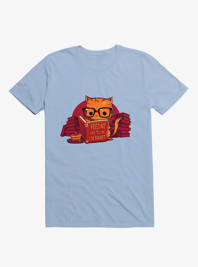 Feed Me And Tell I'm Smart Cat Light Blue T-Shirt
