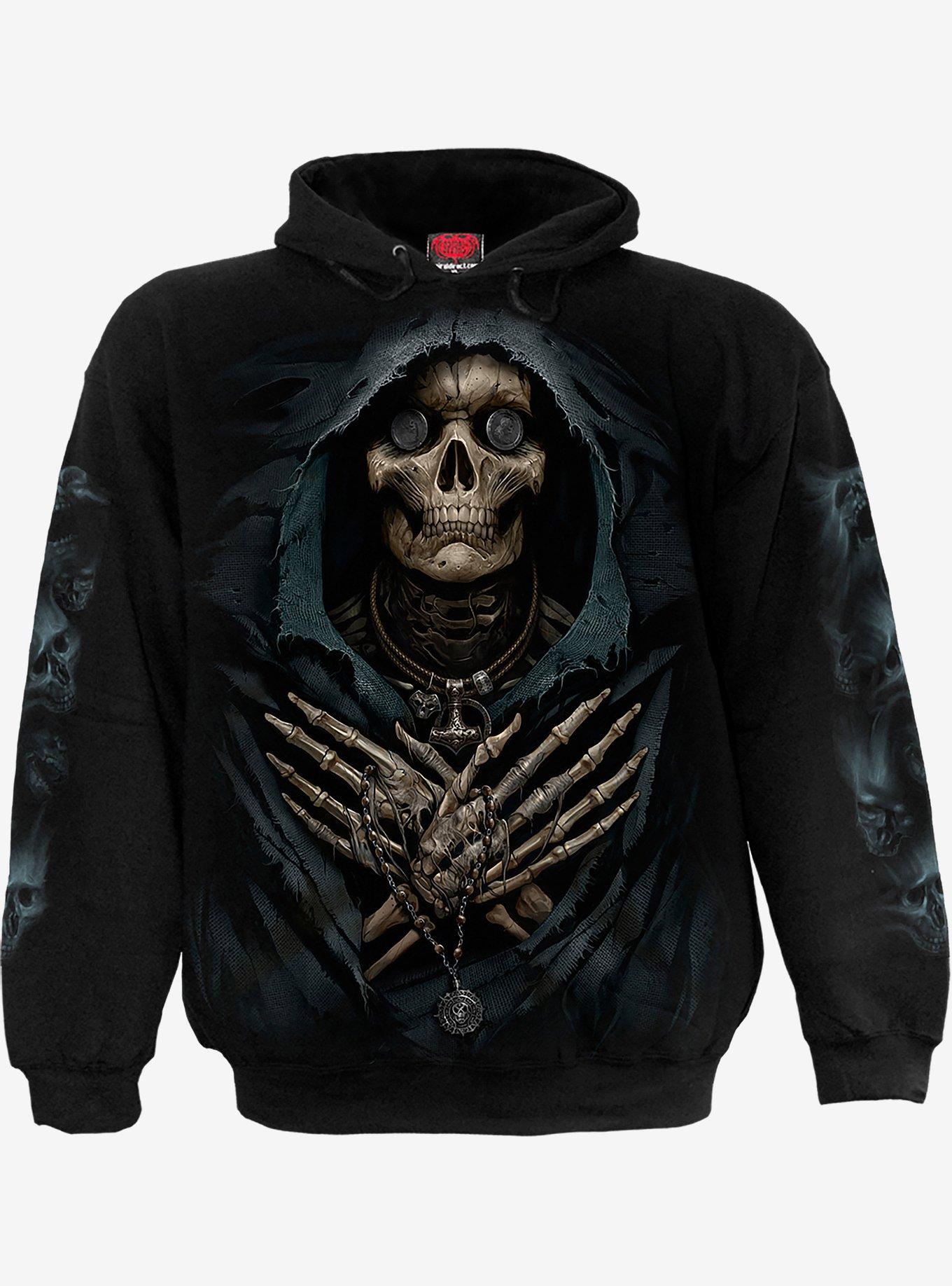 As above, so below the murky waters of a tideless lake that carries the dead to their final resting place. The Ferryman, cursed to give safe passage to those whose loved ones pay for his services, silently moves through the wake his stern forms across the bleak surface. This hoodie is made of top quality cotton fleece using skin friendly, Azo-free, reactive dyes. Item cannot be shipped to P.O. Boxes