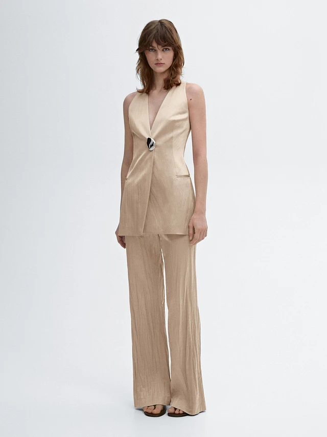 Long-Sleeve Buttoned-Down Blouse with Rhinestones