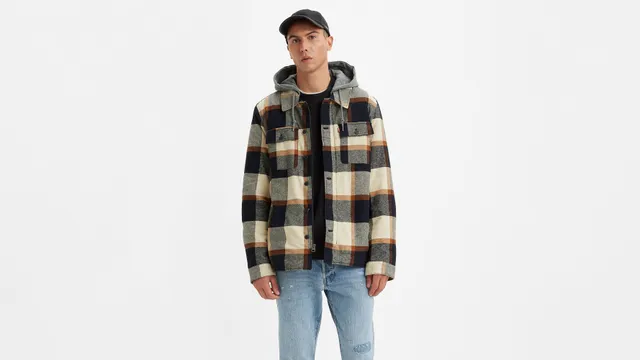 Men's Darius Rucker Collection by Fanatics Black Ohio State Buckeyes Plaid Flannel Quilted Full-Snap Hooded Shacket