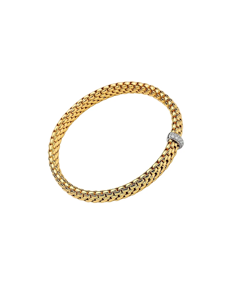 Flexible bracelet entirely made of 18 carat gold with white gold and diamond rondel