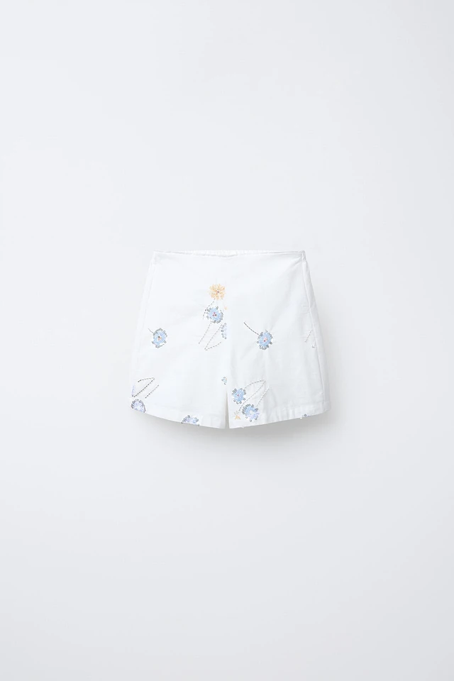 HIGH WAIST EMBROIDERED FLORAL BERMUDA SHORTS