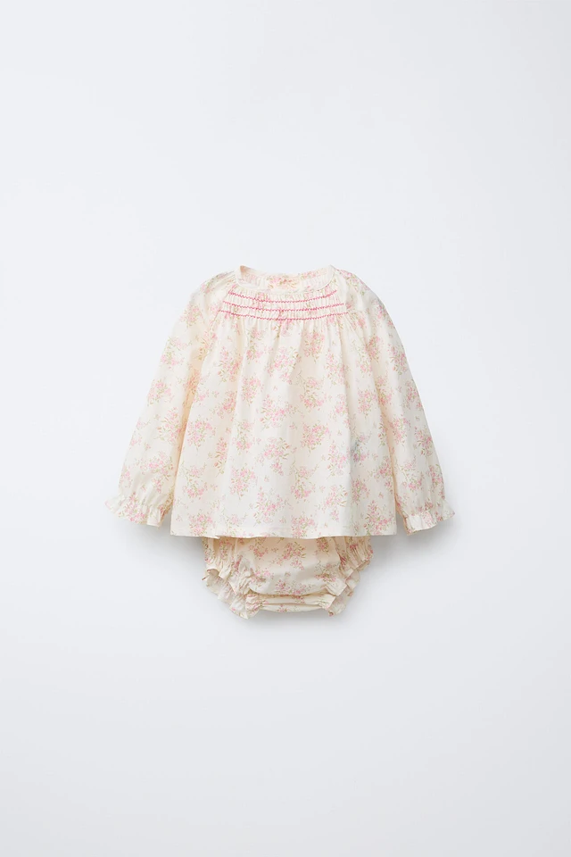 RUSTIC EMBROIDERED FLORAL DRESS AND PANTIES