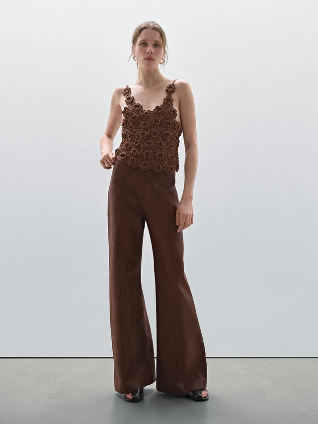 Z1975 HIGH WAIST WIDE LEG JEANS WITH CROCHET DETAIL