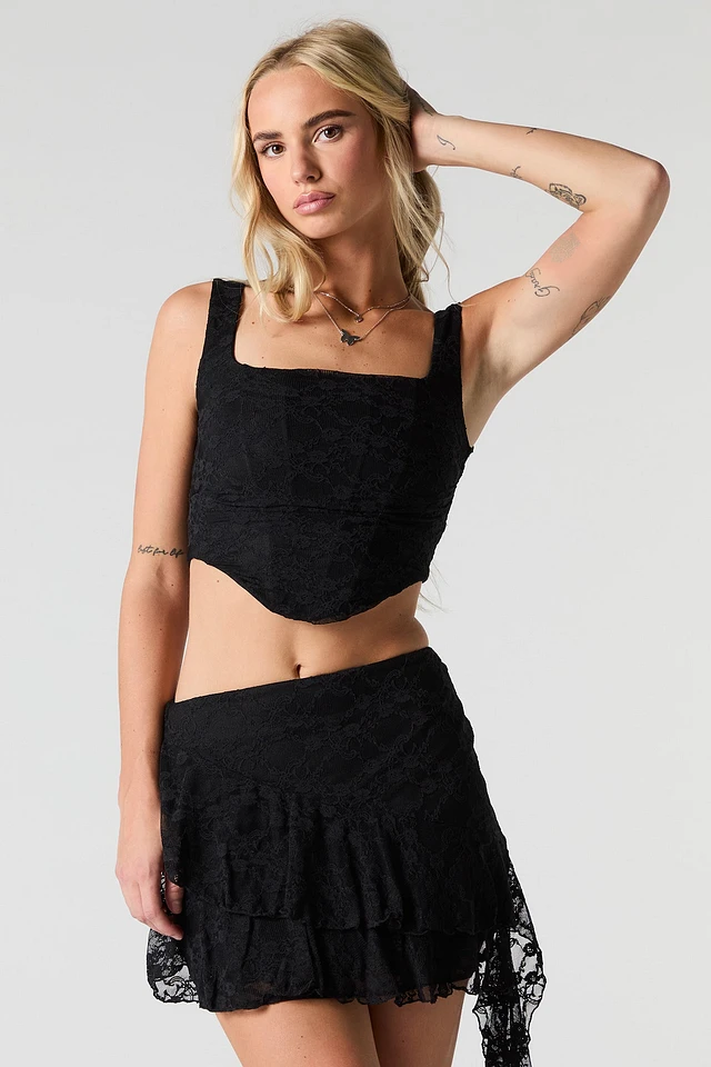 Black Lace Corset Girls Crop Long-Sleeve Top
