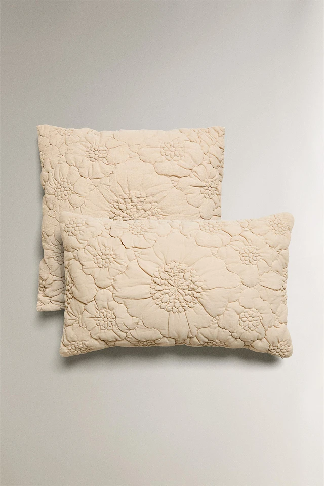 THROW PILLOW COVER WITH FLORAL EMBROIDERY