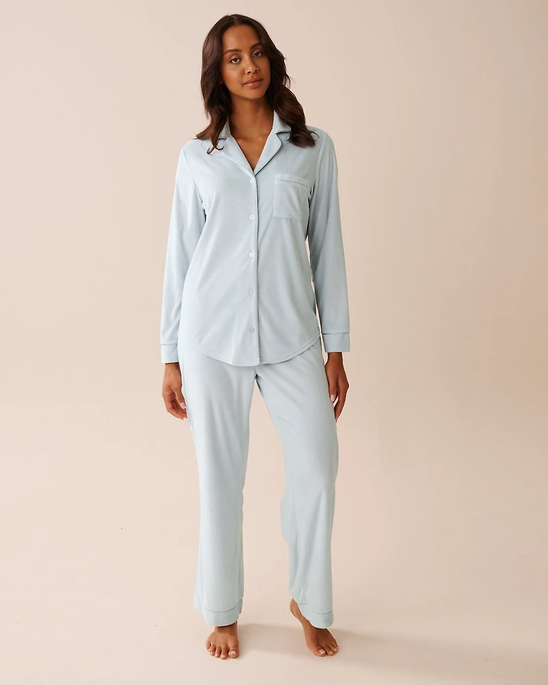 Floral to dream, polka dots to brighten, leopard to dare. Whichever print you choose, this velour PJ set brings a bit of warmth and a lot of softness.