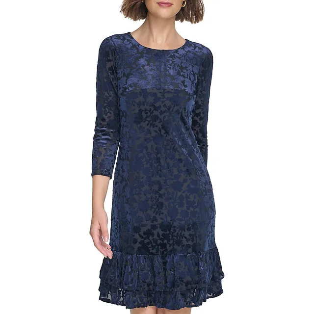 Floral Velvet Ruffle-Hem Dress