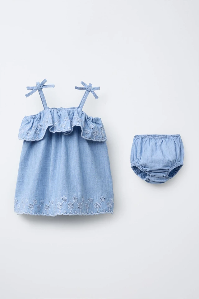 FLOWY DENIM BLOUSE AND PANTIES SET