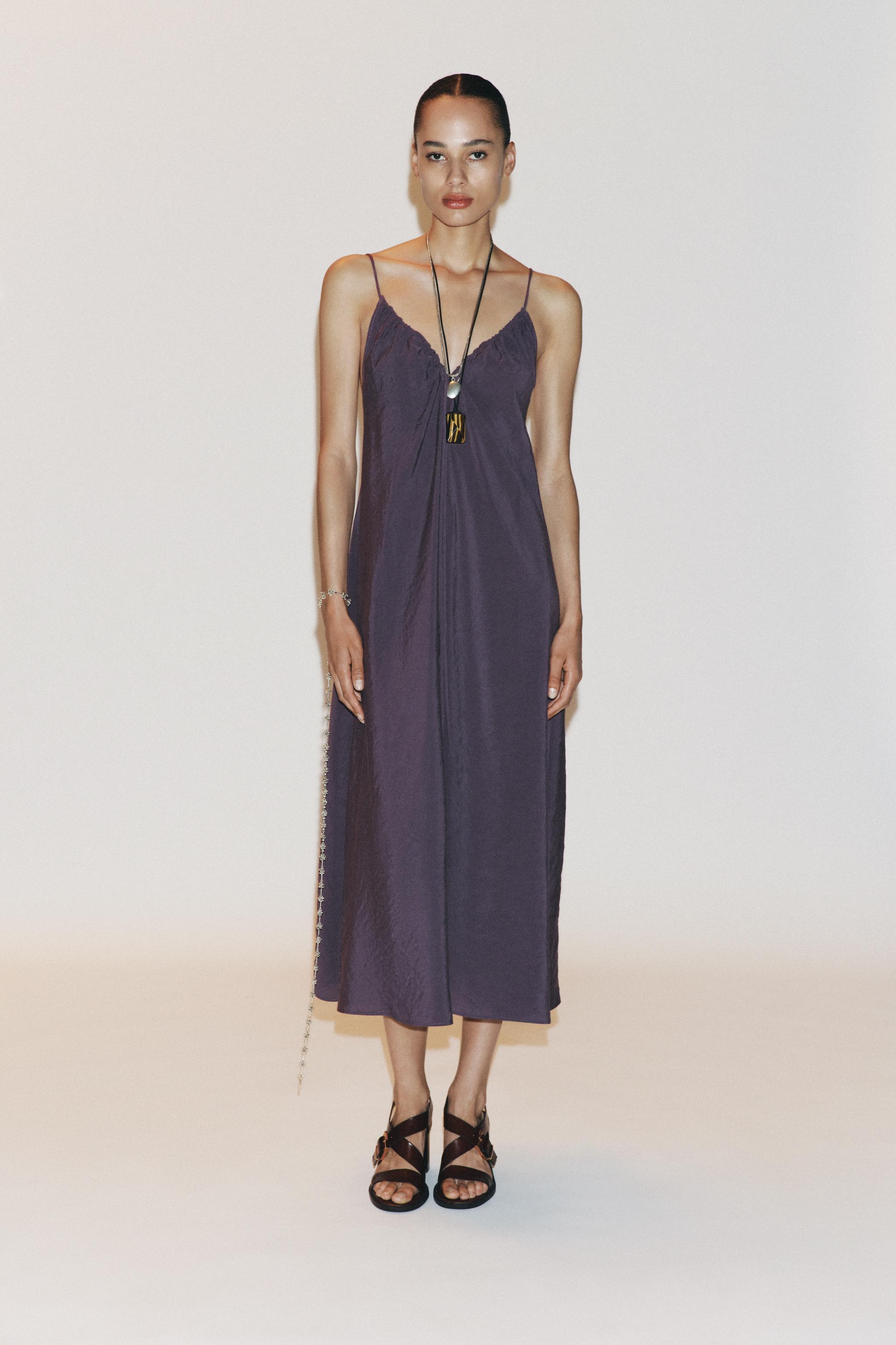 FLOWY RUFFLED V-NECK MIDI DRESS