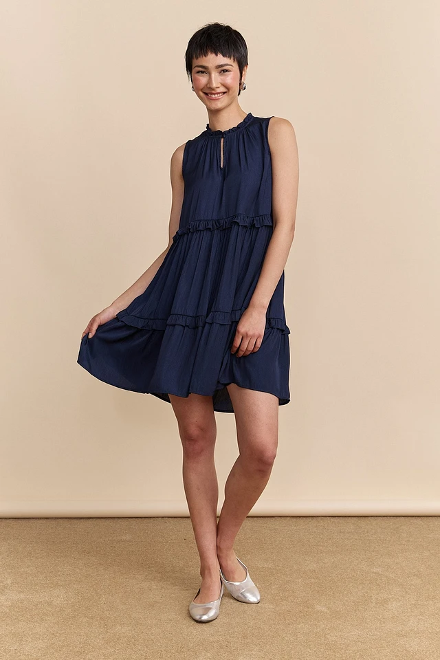SLEEVELESS DRESS WITH FRILLS AND POLKA DOTS