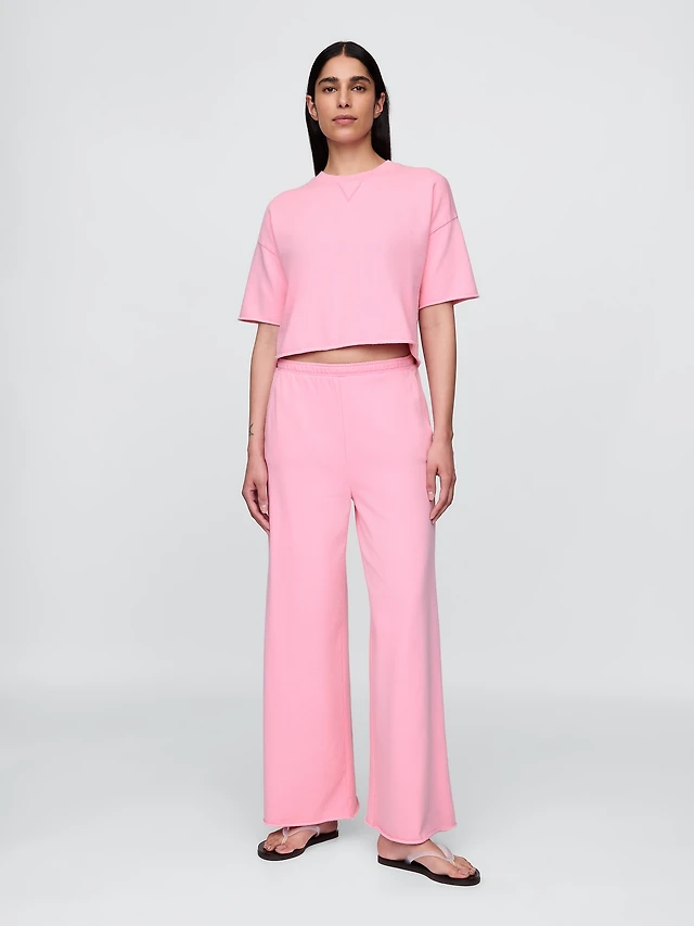 French Terry Wide-Leg Rolled-Hem Sweatpants