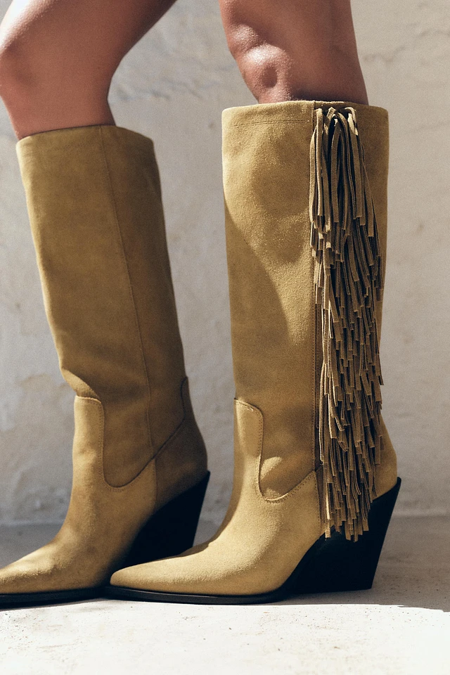 LOW HEELED EQUESTRIAN SPLIT LEATHER BOOTS