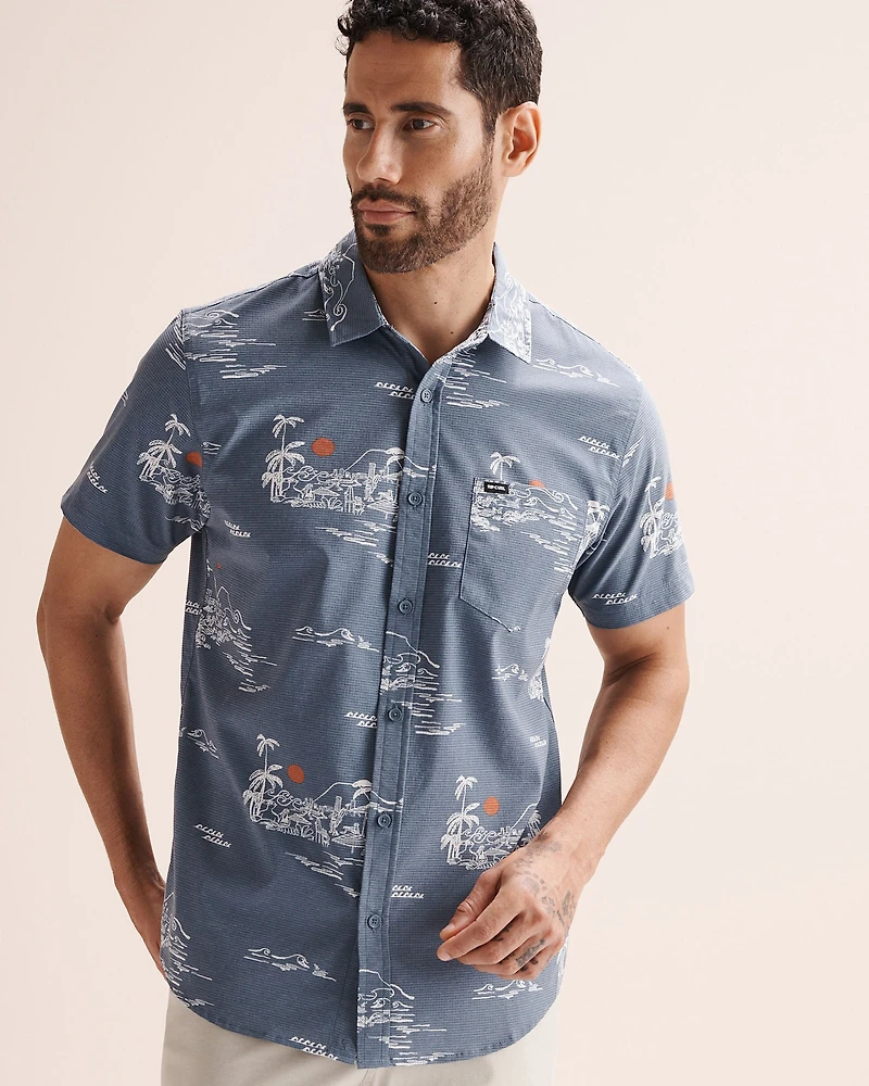 Guaranteed good times with this lightweight, breathable shirt. Its short sleeves and standard fit make it an essential, while the button-front closure and chest pocket add a practical touch. Thanks to its quick-dry fabric and moisture-wicking technology, you’ll stay a little cooler even in the heat. The grey lace stripe pattern brings an elegant, original twist, perfect for a casual yet polished look.