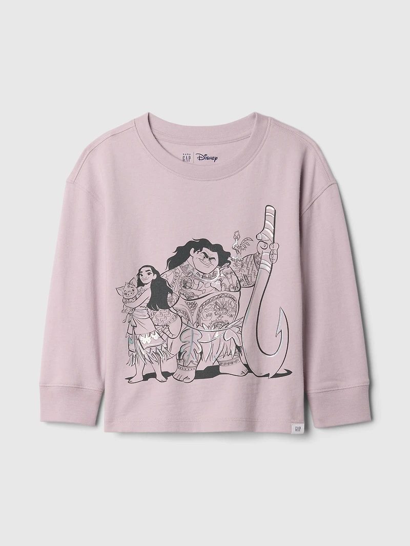 Soft cotton T-shirt. Crewneck. Long sleeves with banded cuffs. Assorted Disney's Moana character graphics at front, Gap logo at back.