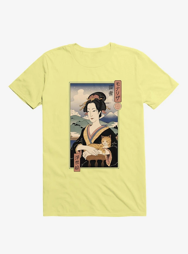 Geisha Cat Lisa Ukiyo-e Corn Silk Yellow T-Shirt