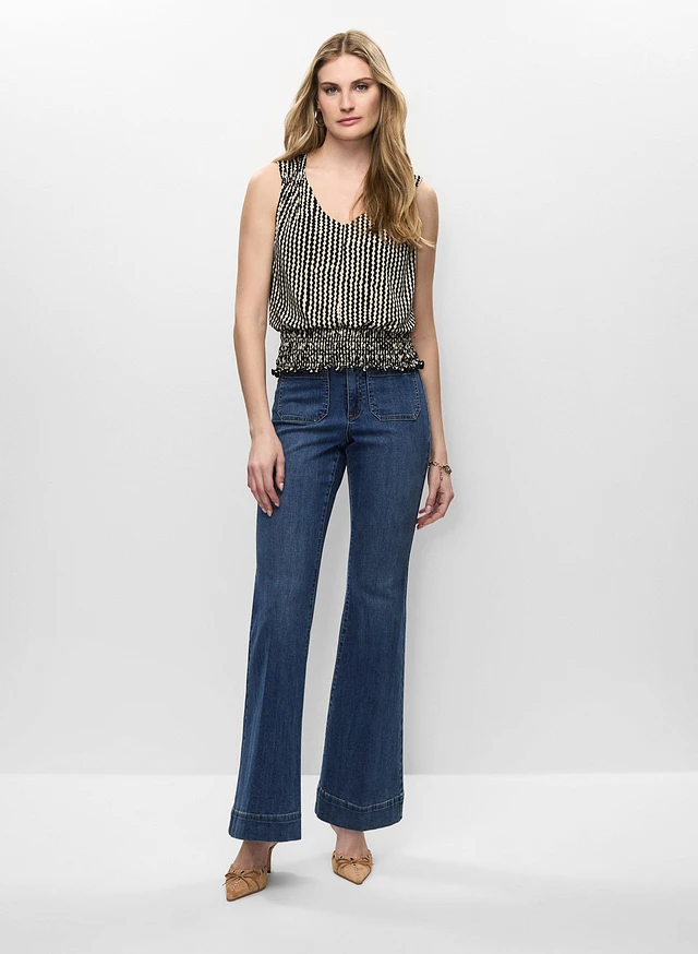 Geometric Print Sleeveless Top & Flare Leg Jeans