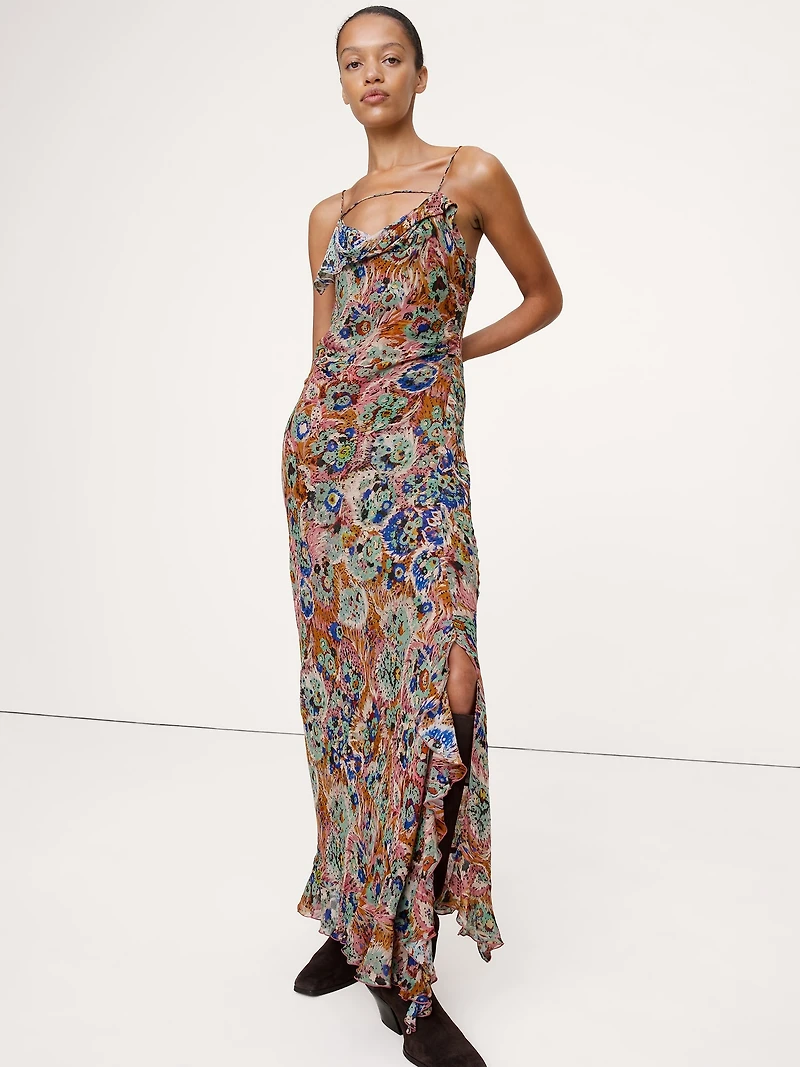 Georgette Cowl-Neck Maxi Dress