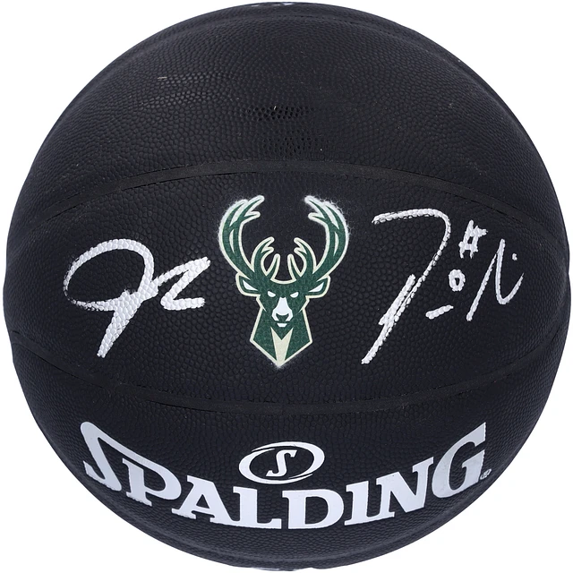 Giannis Antetokounmpo & Damian Lillard Milwaukee Bucks Autographed Black Spalding Team Logo Basketball - BAS