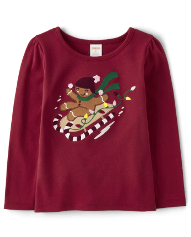 Girls Embroidered Gingerbread Sled Top - Christmas Cabin