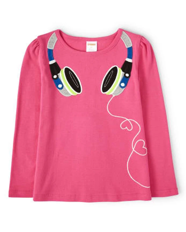 Girls Embroidered Headphones Top - Rock Academy