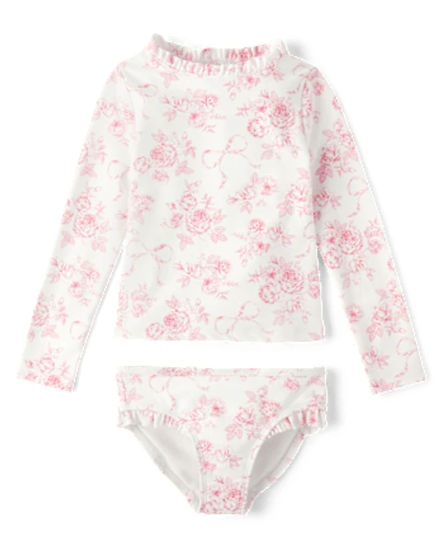 Toddler Girl 2-Piece Floral Long-Sleeve Rashguard Swimsuit Set