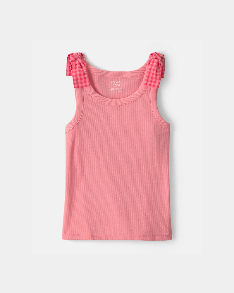 Girls Gingham Bow-Sleeve Tank Top - Pink