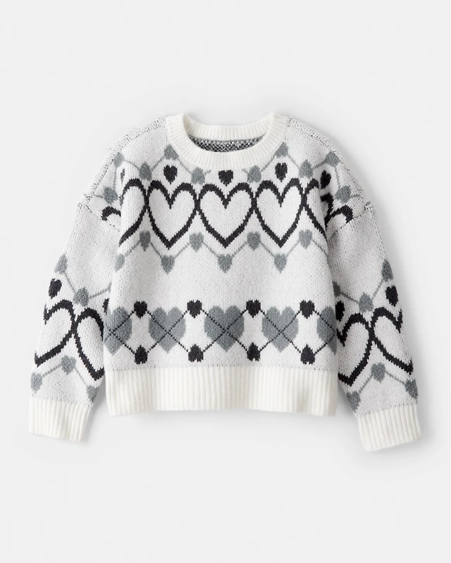 Girls Heart Sweater - White