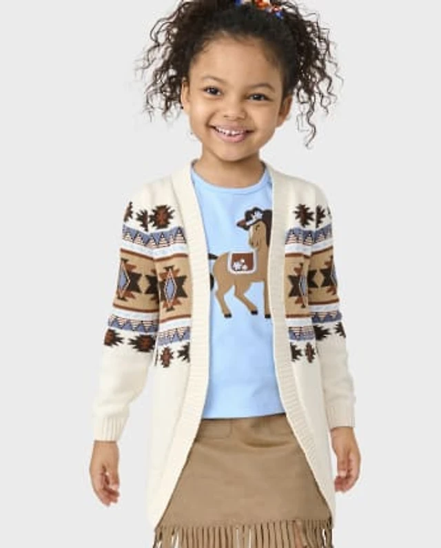 Girls Intarsia Fairisle Long Cardigan - Montana Mountain
